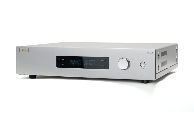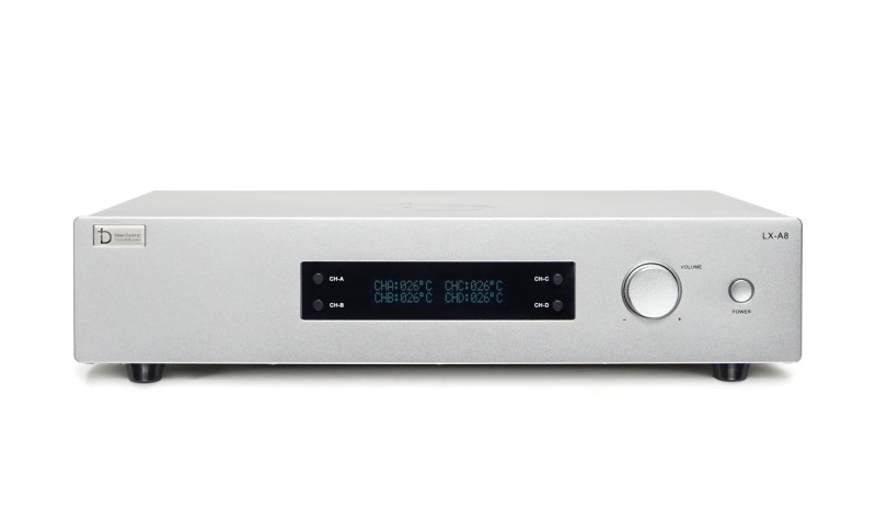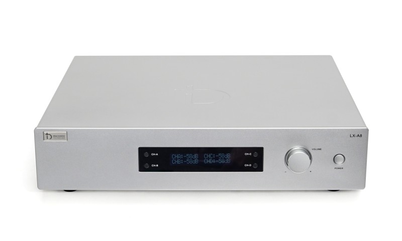 - Phía trước LX - A8 nổi bật là màn hình LCD hiển thị đầy đủ thông số hiệu chỉnh khi sử dụng. Thay vì các đèn led, hệ thống tản nhiệt và các nút vặn như truyền thống, LX A8 được thiết kế tối giản hơn với 4 nút bấm chuyển CH và 1 nút vặn hiệu chỉnh cỡ lớn và 1 nút nguồn. Tạo cảm giác vô cùng basic nhưng cũng k kém phần sang trọng, đẳng cấp.