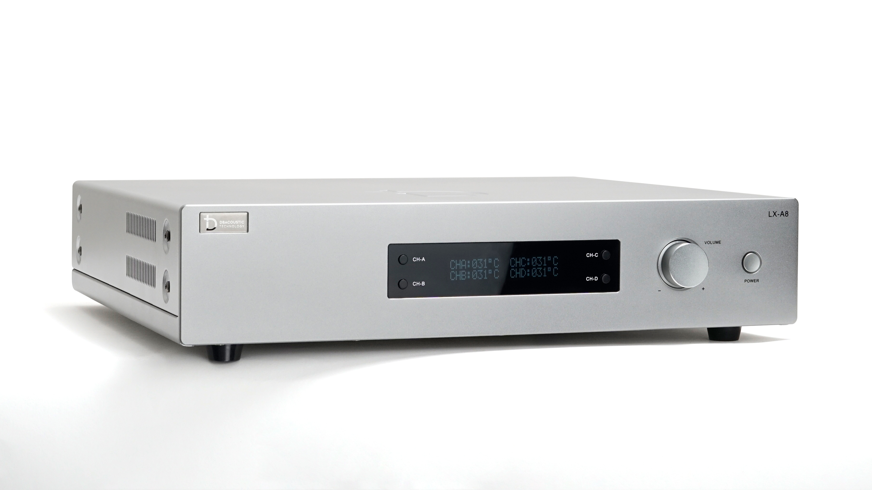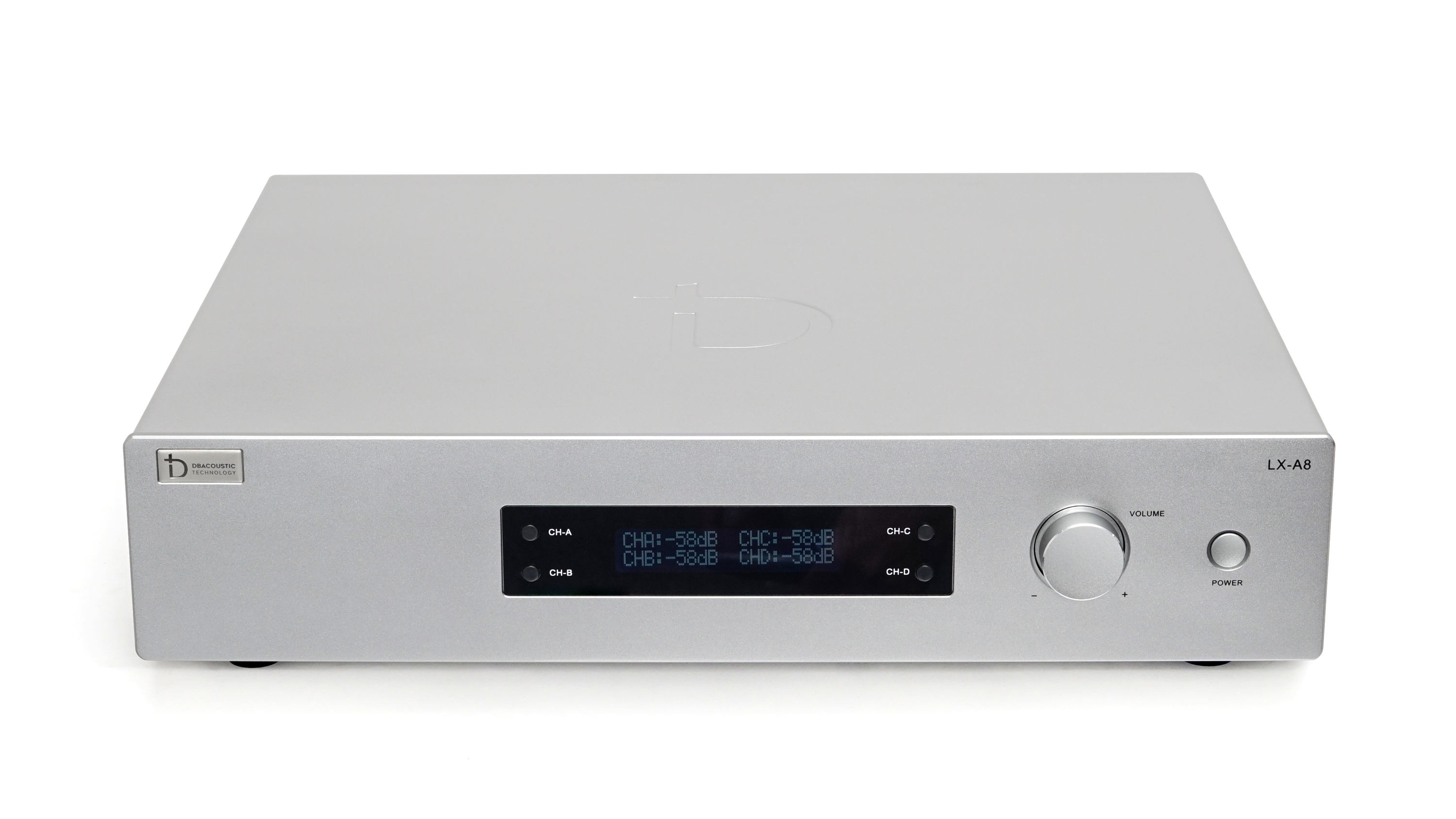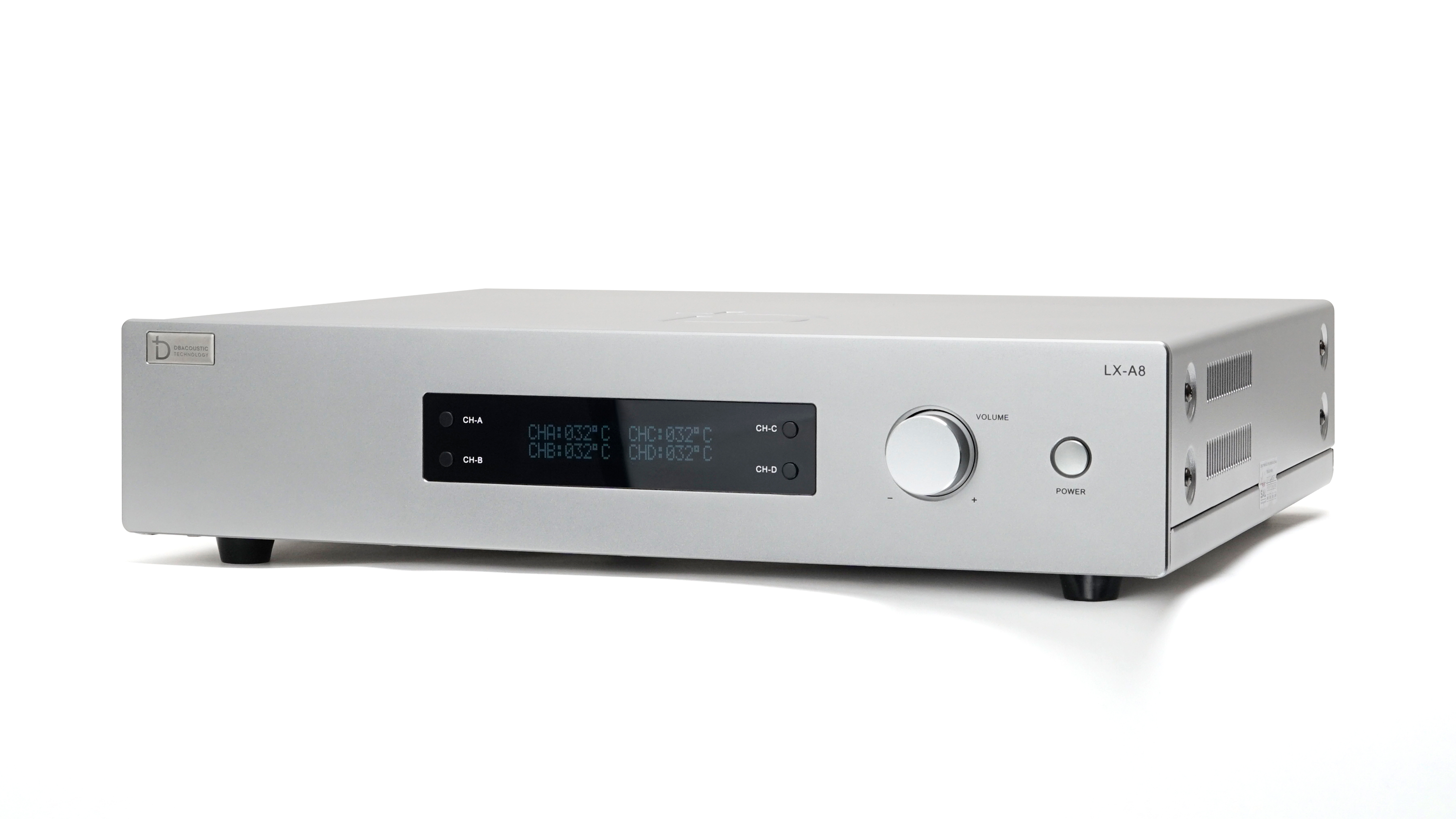 - Phía trước LX - A8 nổi bật là màn hình LCD hiển thị đầy đủ thông số hiệu chỉnh khi sử dụng. Thay vì các đèn led, hệ thống tản nhiệt và các nút vặn như truyền thống, LX A8 được thiết kế tối giản hơn với 4 nút bấm chuyển CH và 1 nút vặn hiệu chỉnh cỡ lớn và 1 nút nguồn. Tạo cảm giác vô cùng basic nhưng cũng k kém phần sang trọng, đẳng cấp.